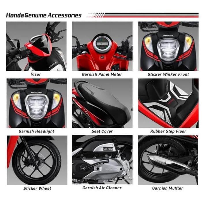 Harga aksesoris motor genio. Harga sepeda motor honda yang tertera disini tidak mengikat dan dapat berubah sewaktu waktu tanpa pemberitahuan terlebih dahulu. Aksesoris honda genio resmi honda membuktikan bahwa mereka benar benar mampu menyuguhkan sebuah kendaraan roda dua dengan desain dan gaya yang begitu di idam idamkan banyak orang terutama para kalangan anak muda milenial saat ini dan motor tersebut adalah honda genio tampilan standar dari honda genio yang di keluarkan astra honda motor ahm ini memang sudah begitu mewah dan elegan. 13 daftar harga aksesoris honda genio 150 sparepart aksesoris 0 komentar honda genio hadir untuk kaula muda yang senang dengan konsep motor yang minimalis namun futuristik. Demikian teman teman informasi seputar harga aksesoris honda genio 110.