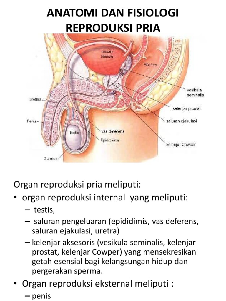 Di belakang kandung kemih. Secara garis besar alat kelamin pria dibagi kedalam 2 kelompok yaitu. Organ reproduksi pria internal meliputi testis saluran reproduksi dan kelenjar aksesoris. A vesika seminalis atau saluran mani.